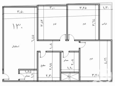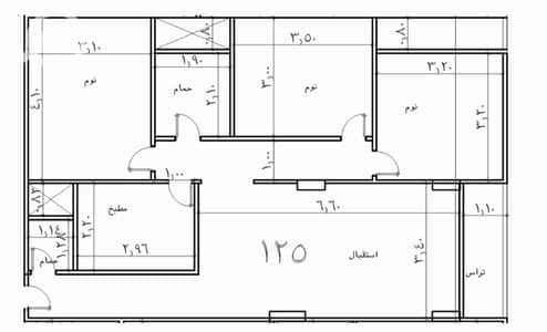 3 rooms + 2 bathrooms + kitchen + reception.
