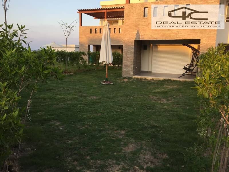 Chalet steps from the sea Ground floor with garden for sale at a bargain price in a prime location with a stunning open view in Amwaj north coast