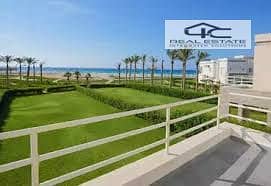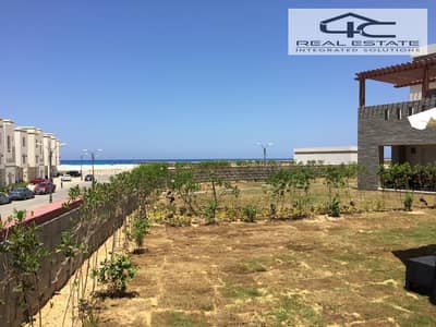 Chalet steps from the sea Ground floor with garden for sale at a bargain price in a prime location with a stunning open view in Amwaj Al Ahly Sabbour North Coast.