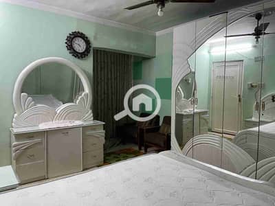 Furnished apartment for rent on Corniche Al-Maadi, Tura, with a side view of the Nile, consisting of 3 rooms and an air-conditioned bathroom.