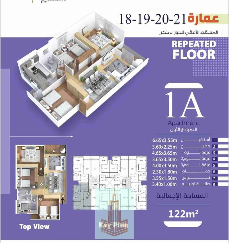The apartment features an area of 122 sqm, with a starting price of 3,381,000 EGP, and flexible installment plans over 5 years. The payment system includes 10% upon contract and 10% upon delivery, offering great flexibility for buyers and investors. The project’s units start from 107 sqm, catering to the needs of families and individuals alike.