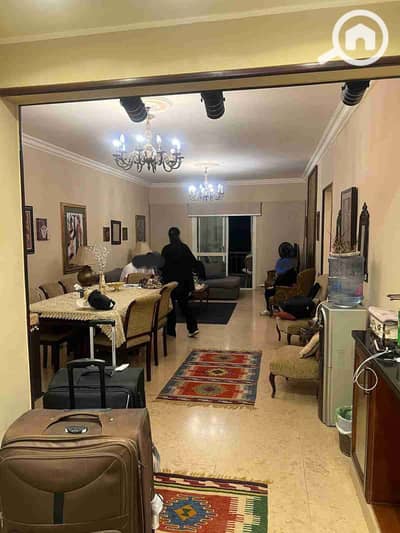Furnished apartment for rent in Dreamland Compound, 130m, 2 bedrooms, 2 bathrooms, kitchen, reception, and balcony overlooking the swimming pool, with internet available.