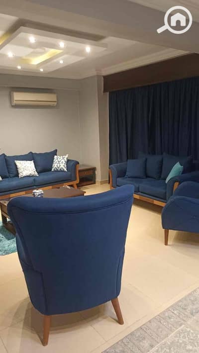 Furnished apartment in the Shooting Club area of Dokki. 3 bedrooms, 3 bathrooms, and a reception area. Price: 35,000 EGP