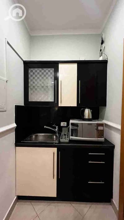 Furnished studio for rent in Dream Land, fully air-conditioned with a bedroom, reception, kitchen, and bathroom, and there is internet in Dream Land compound.