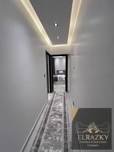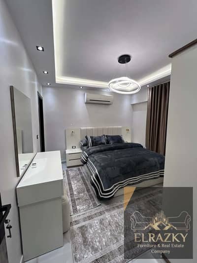 Furnished apartment for rent, first occupancy, in Nasr City, Abbas El Akkad Street, near City Stars and City Centre Makram Ebeid. 3 bedrooms with modern furniture, 2 bathrooms (one master), American-style kitchen equipped with all appliances, and a large two-piece reception area.