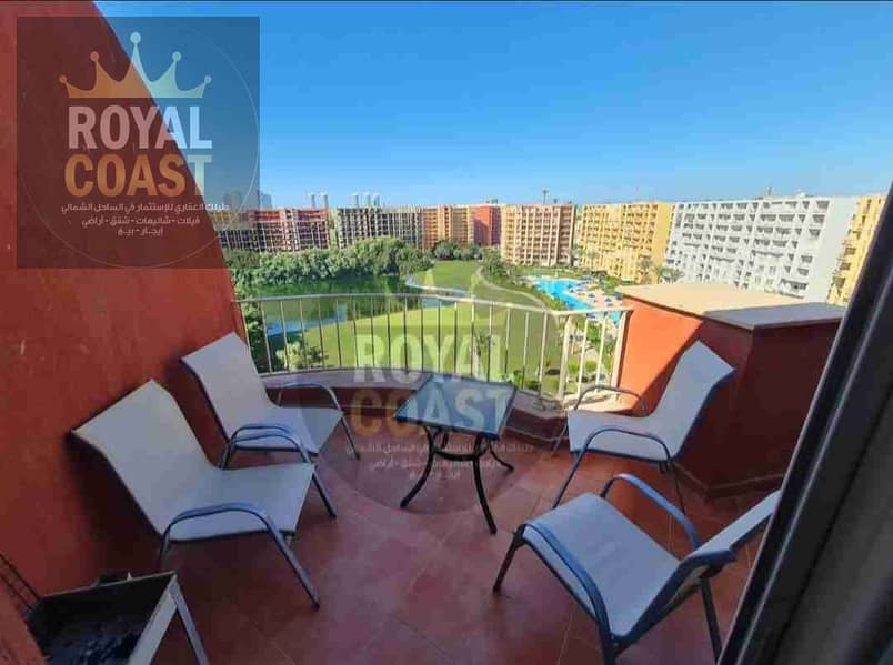 Chalet for sale in Porto Golf Marina, 3 bedrooms and 2 bathrooms, with a generous area of 185 sq m. Fully air-conditioned, ultra-luxurious finishing, and furnished with hotel-style furniture. Located in the ( VIP) area.