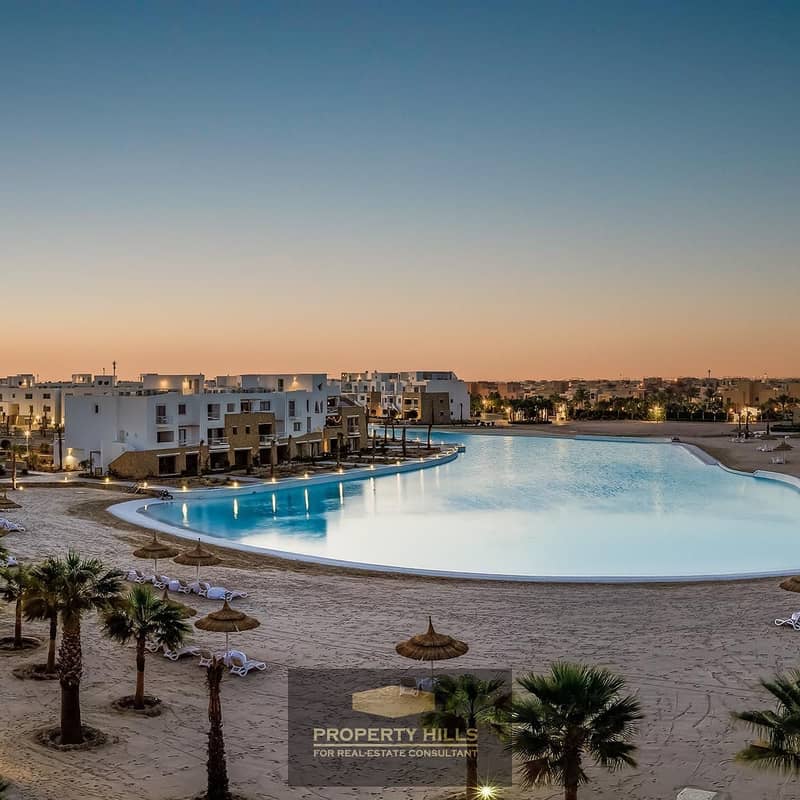 Investment opportunity with Hassan Allam, a ready, fully finished ultra super lux chalet with air conditioning and a panoramic sea view in Hurghada - Red Sea at Swan Lake El Gouna.