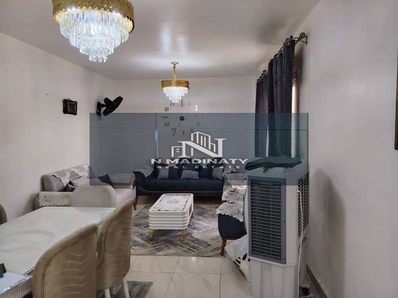 A real bargain! For rent in one of the most prestigious phases of Madinaty, a fully furnished 107m² apartment in B8, fully air-conditioned, with moder
