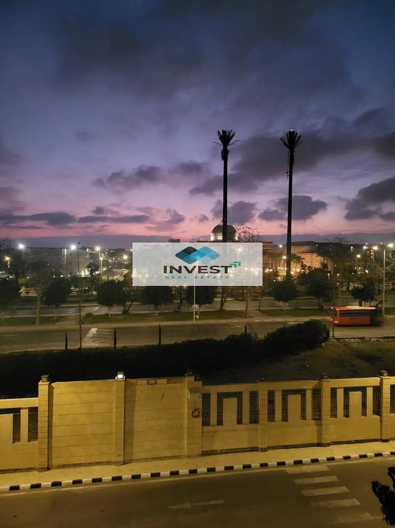 Furnished apartment for rent in Wasal Compound, with a beautiful double view of the garden and park, measuring 165 square meters, opposite the British