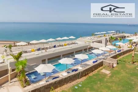 Ground floor chalet with garden corner for sale ready to move directly on the beach prime location open view steps from the sea in Monte Galala Ain Sokhna.