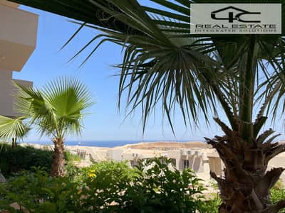 Ground floor chalet with garden corner for sale, ready for immediate occupancy, directly on the beach, prime location, open view, steps from the sea in Monte Galala, Ain Sokhna.
