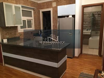 Furnished studio apartment for rent in Madinaty, 64 sq m, in B7. First occupancy, high-end finishing, modern furnishings, fully air-conditioned, with a clear sea view, very close to services, steps from South Park and other amenities.