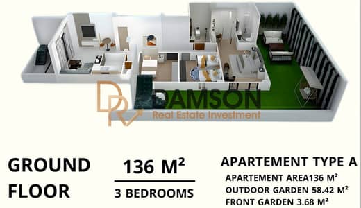 Own an apartment with a private garden in one of the best locations in New Cairo