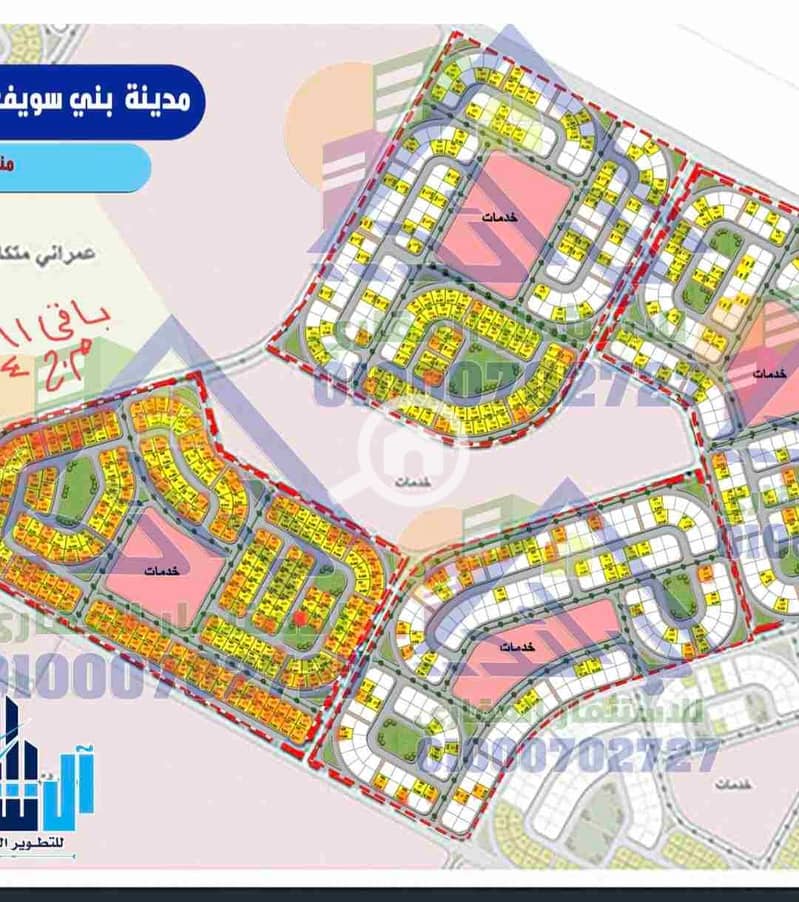 Land for sale in Bayt Al-Watan in the New Beni Suef City, the eleventh neighborhood directly on the university street, the fourth block, with an area of 483 m, just steps away from Al-Nahda University and the thirteenth neighborhood. The area is very distinguished, and more than one plot is available in the same block.