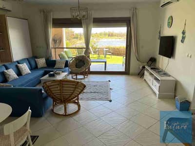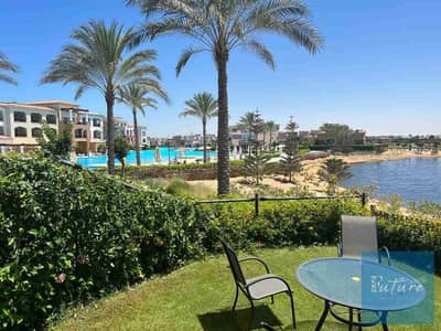 For sale, ground floor chalet with garden in Marassi Verdi, lagoon and golf view, best view in Marassi, approximately 5 million EGP below market price. Marassi Verdi