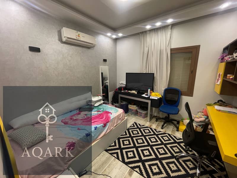 For rent in Madinaty, a four-bedroom villa F3 with special finishes, close to services. It consists of 3 rooms, including a master bedroom, 3 bathrooms, a roof, an area of 350 sqm, and buildings of 211 sqm. The villa has a ground floor reception, kitchen, and bathroom, while the first floor has 3 rooms and 2 bathrooms. A very distinguished location.