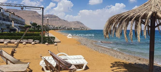 Fully finished chalet in El Sokhna, immediate delivery, with AC and kitchen. Ready for viewing, directly on the sea.