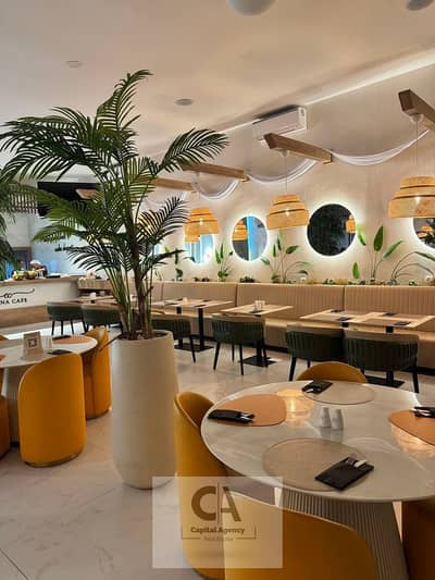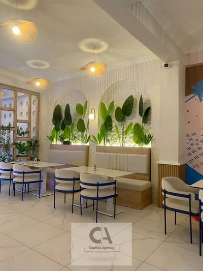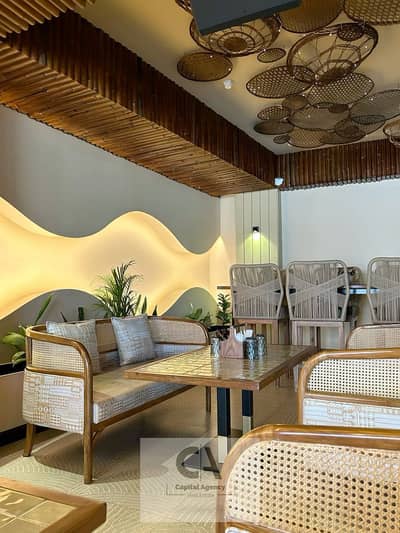 Restaurant for rent, 147 sq m, fully finished with air conditioning, ground floor, storefront, in a prime mall in New Cairo (Fifth Settlement).
