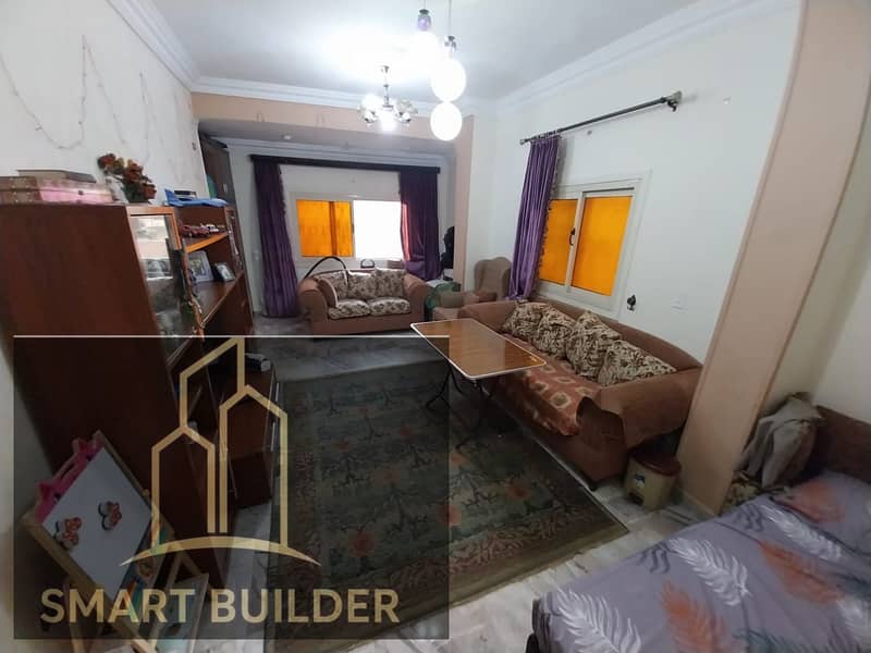 Ground floor apartment in the back side of the violet 10 villas in the first gathering, apartment area 110 square meters, super lux finish, location in front of all services, the apartment is fully equipped with all utilities.