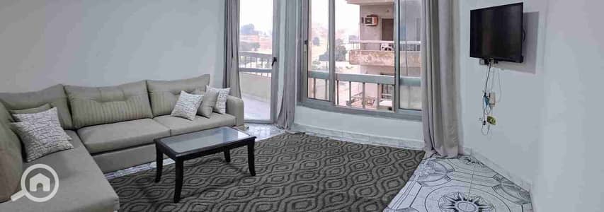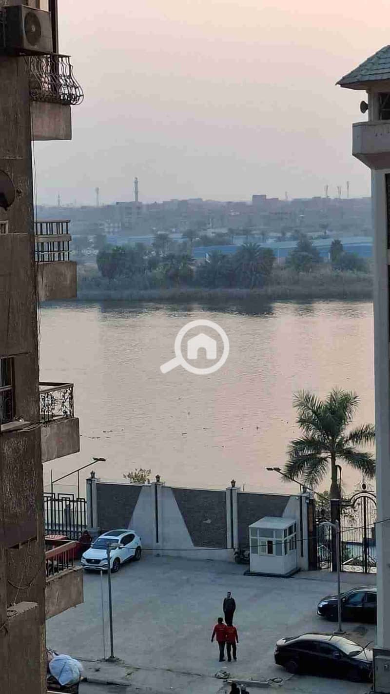 Furnished apartment for rent with two bedrooms and a bathroom, natural gas available, located at Al-Shorouk Club, Corniche in Maadi with direct Nile view, fifth floor. 20,000 per month for a one-year contract