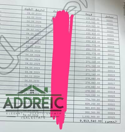 A premium apartment for sale in Madinaty with installments nearly at cash price, located in one of the finest buildings. The unit is corner, double face, north-facing, overlooking open landscape and the canal, offering great ventilation and natural light. Total area is 204 sqm, with 3 or 4 bedrooms based on layout, a living room, 3 bathrooms, and a spacious reception. Total contract price is EGP 12,911,000 with installments until 2030. Paid amount is EGP 3,338,000, remaining EGP 9,774,000. Required over is EGP 550,000, total down payment EGP 3,888,000. Ideal for living or investment.