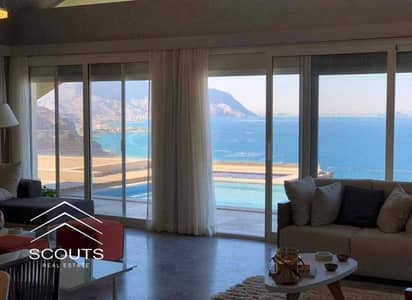 Chalet for sale, first sea row, with a 35% discount, fully finished in ultra super deluxe, open view of the sea and lagoons at IL Monte Galala.