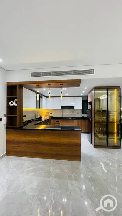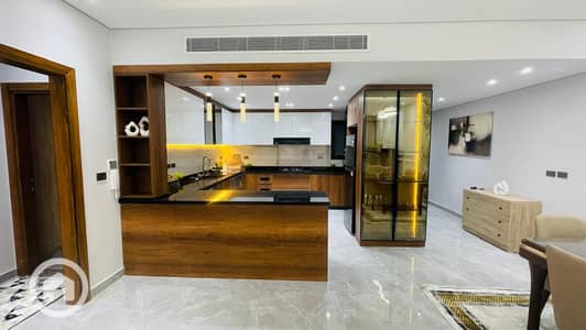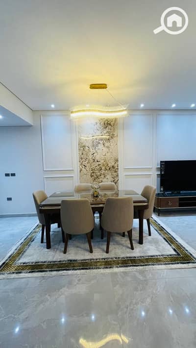 A luxurious, fully furnished apartment is available for rent in one of New Cairo's most prestigious communities, featuring a modern design and elegant furnishings. The apartment boasts lush green spaces and artificial lakes.