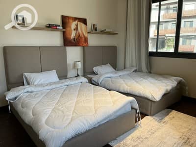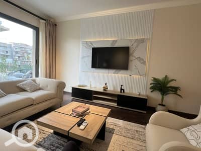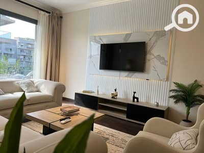 For rent: a ground floor apartment with a private garden in Villette – V Residence by SODIC, ideally located next to the clubhouse, with a stunning pool and landscape view.