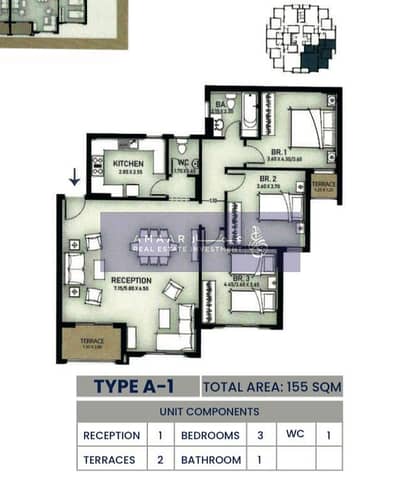 The unit consists of (3 bedrooms - 3 reception rooms - 2 bathrooms).