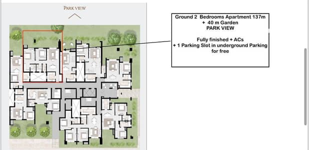 Ground floor apartment with garden for sale in Zed Compound, Sheikh Zayed