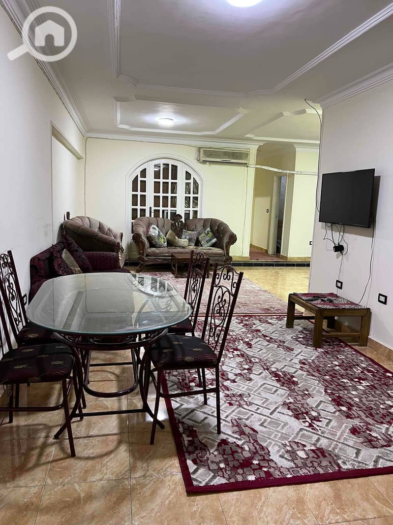 Furnished apartment for rent in Maadi in a very upscale and distinguished location, first row on the Nile corniche directly. Chic building, monitored by cameras and 24-hour security. Second floor with an elevator, two rooms with a direct view of the Nile, two bathrooms, reception, and fully air-conditioned kitchen, with internet.