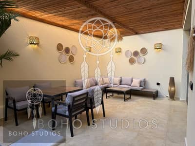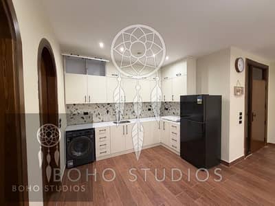 Apartment with a private swimming pool, a master bedroom with bathroom and dressing room, a reception, a guest bathroom, and an American kitchen in the finest neighborhoods of Al Tagamoa, Yasmeen 3.