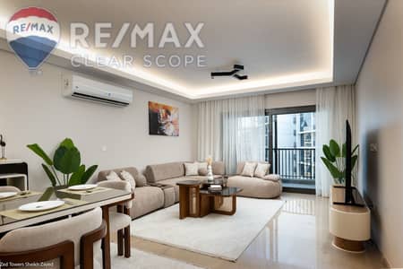Live in one of Sheikh Zayed’s most prestigious compounds. A fully furnished, high-end apartment with modern finishing, ready for immediate move-in.