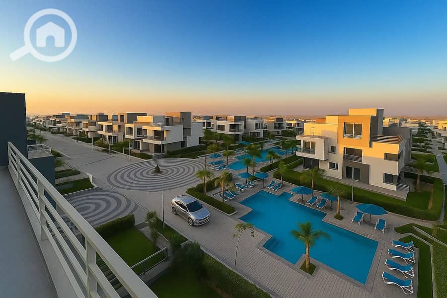 ready-to-move-in villa in Compound Patio Al Zahraa by La Vista, next to Zaid Towers in the heart of Sheik Zayed, directly on Al Nozha Street and near Al Ahly Club.