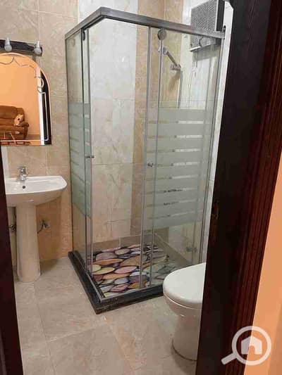 October 6 Dream Land Compound Studio 67m for rent furnished and fully air-conditioned, the furniture is excellent, and the reception has a Lazy Boy couch. It is divided into a bedroom and a bathroom with a shower cabin, a fully equipped open kitchen with natural gas, a reception area, and a balcony with an unobstructed sea view. There is fiber internet available near the swimming pool and the center.