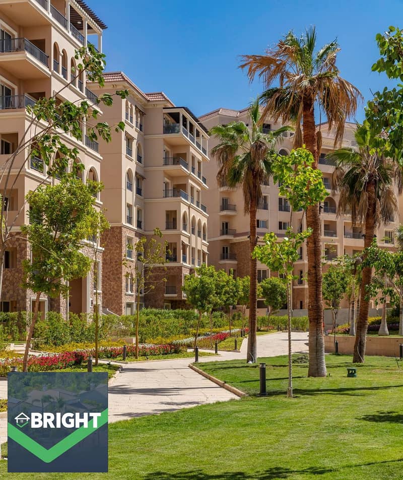 A fully finished apartment with air conditioning in the prestigious "90 Avenue" compound in the heart of New Cairo's Fifth Settlement, with a direct pool view. 15% down payment and easy installments.