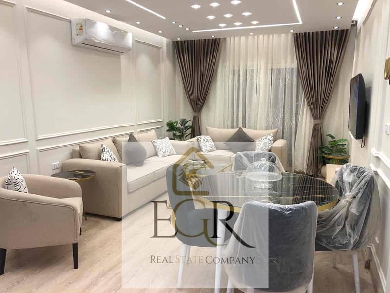 Furnished apartment for rent, first occupancy, Al Rehab, 89m next to the Eastern Market, super lux finishes.