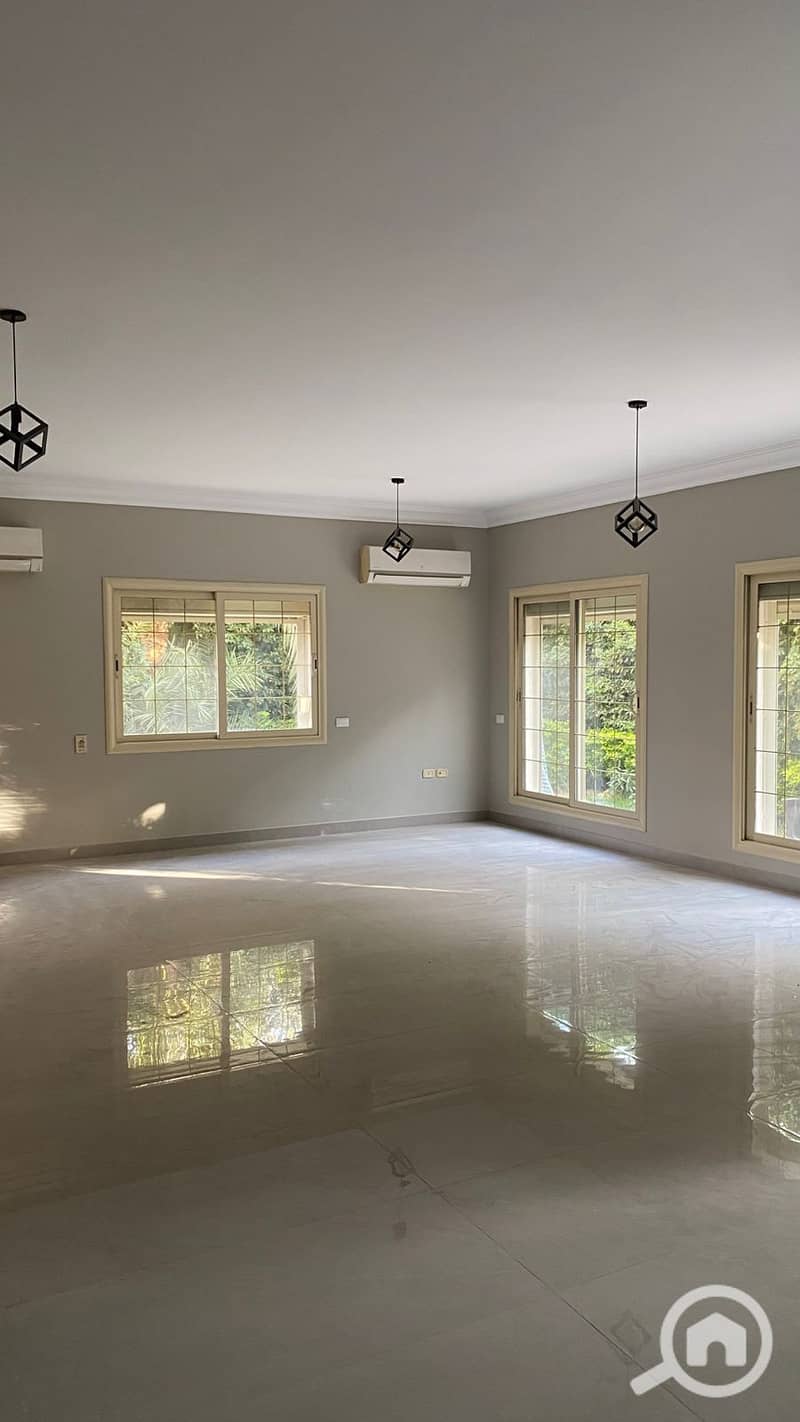 Villa for rent semi-furnished with kitchen and air conditioning, special finishing in Flower Park compound directly in front of Al-Rehab - First Settlement - New Cairo