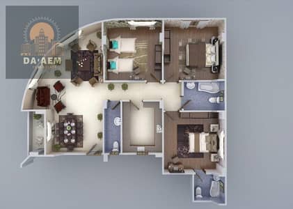 Layout: Reception – 3 bedrooms – 3 bathrooms – Kitchen