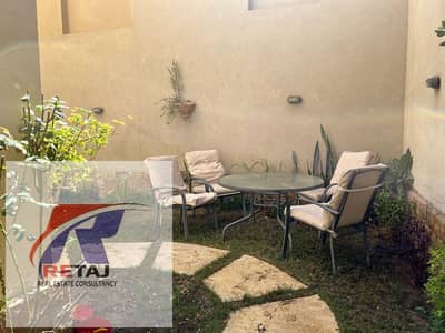 Elevated basement apartment (equivalent to a ground floor) with a private garden and private entrance in Yasmin Villas 7, opposite Al-Kababji Palace and Mahmoud Al-Far, First Settlement, second row from North 90th Street.