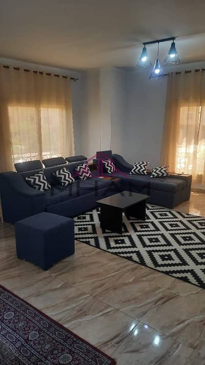 A furnished apartment for rent, 200m, super luxurious, with super luxurious furnishings, modern appliances, and a garden view. The building is made of Hashemite stone. It has three air-conditioned bedrooms, three reception rooms, and two bathrooms.