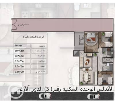 Interior layout: 3 rooms, 2 bathrooms, and a reception