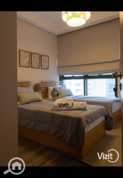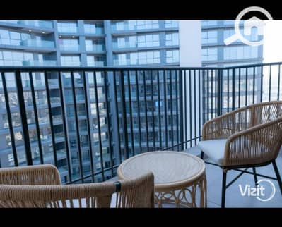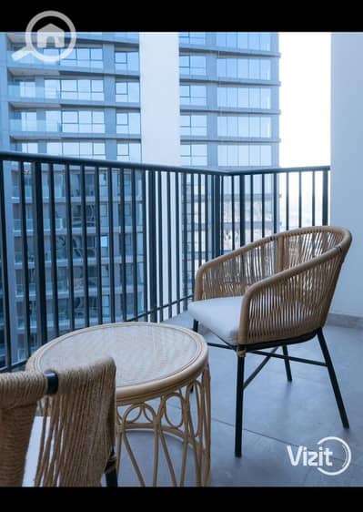 Furnished apartment for rent in Zed Towers – Sheikh Zayed, with a balcony offering stunning views of the green spaces.