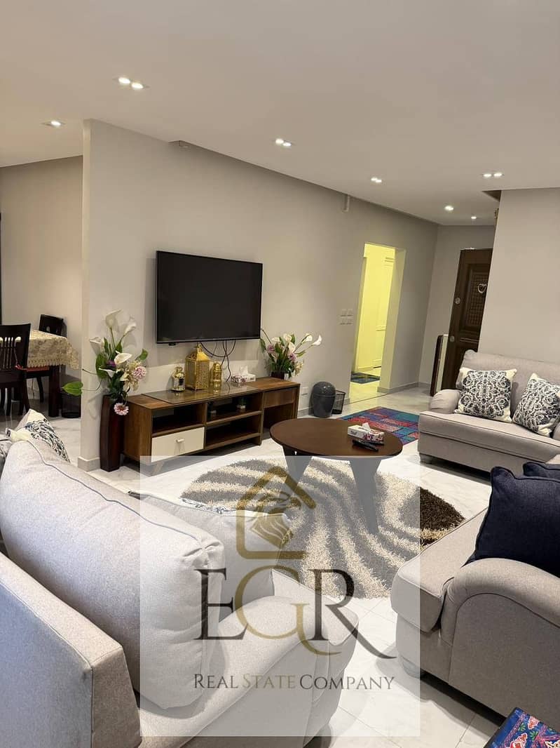 Furnished apartment for rent in Al-Rehab, first occupancy near services, special finishes, modern furnishings