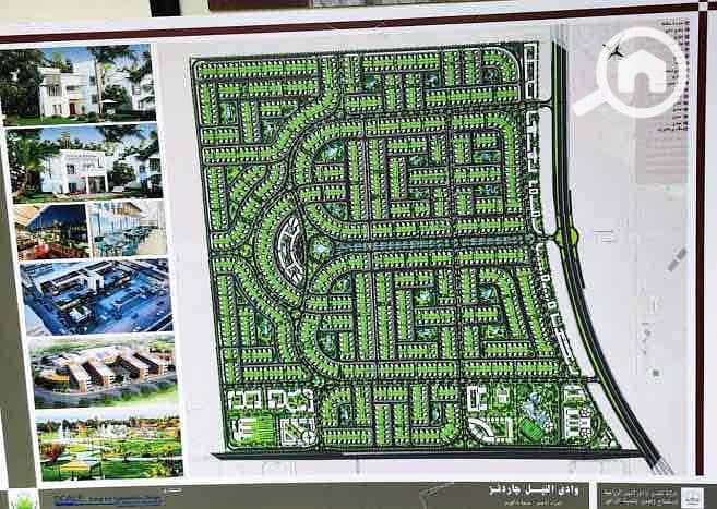 A distinctive piece of land on a 32 m wide street on the main road in Wadi El Nile Garden compound directly facing Porto (Neom) October