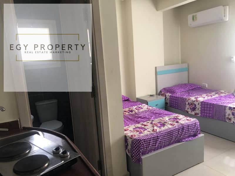 Studio for rent 40m furnished in the first neighborhood, 6th of October, steps to MSA University.
