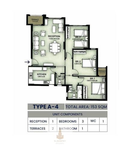 Spacious reception + kitchen + 3 bedrooms + 2 bathrooms + 2 terraces with a beautiful view