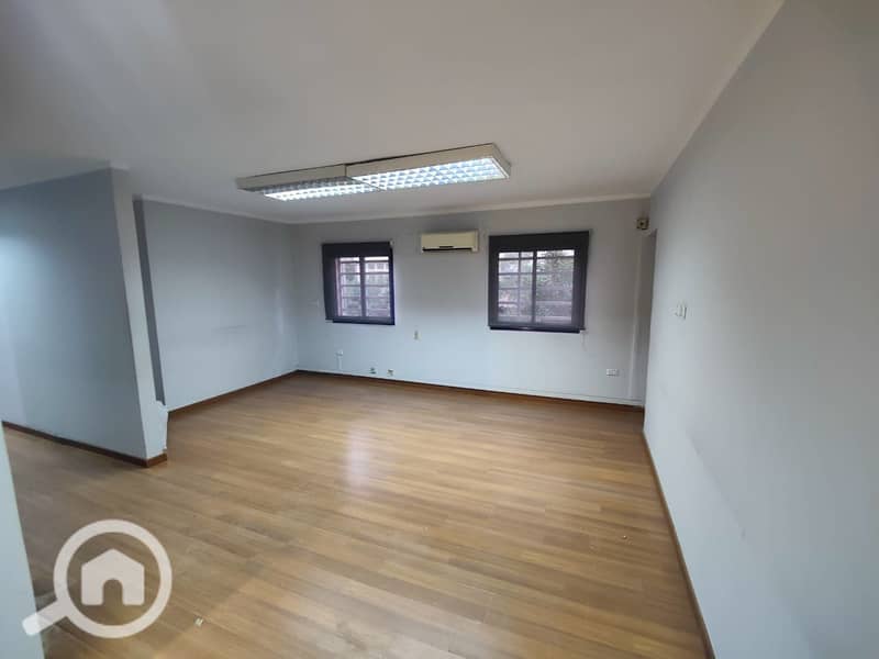 250m² licensed administrative apartment fully air-conditioned for rent in the Diplomatic District, Madinet Nasr, first corner, 5 rooms, a spacious reception, 3 bathrooms, 2 balconies, and a kitchen with super-lux finishes, parquet floors, 7 air conditioners, natural gas, a water heater, a fully equipped dining room, office curtains, lighting fixtures, and a separate water meter from the property for a very attractive rent of only 40,000 EGP, suitable for all purposes.