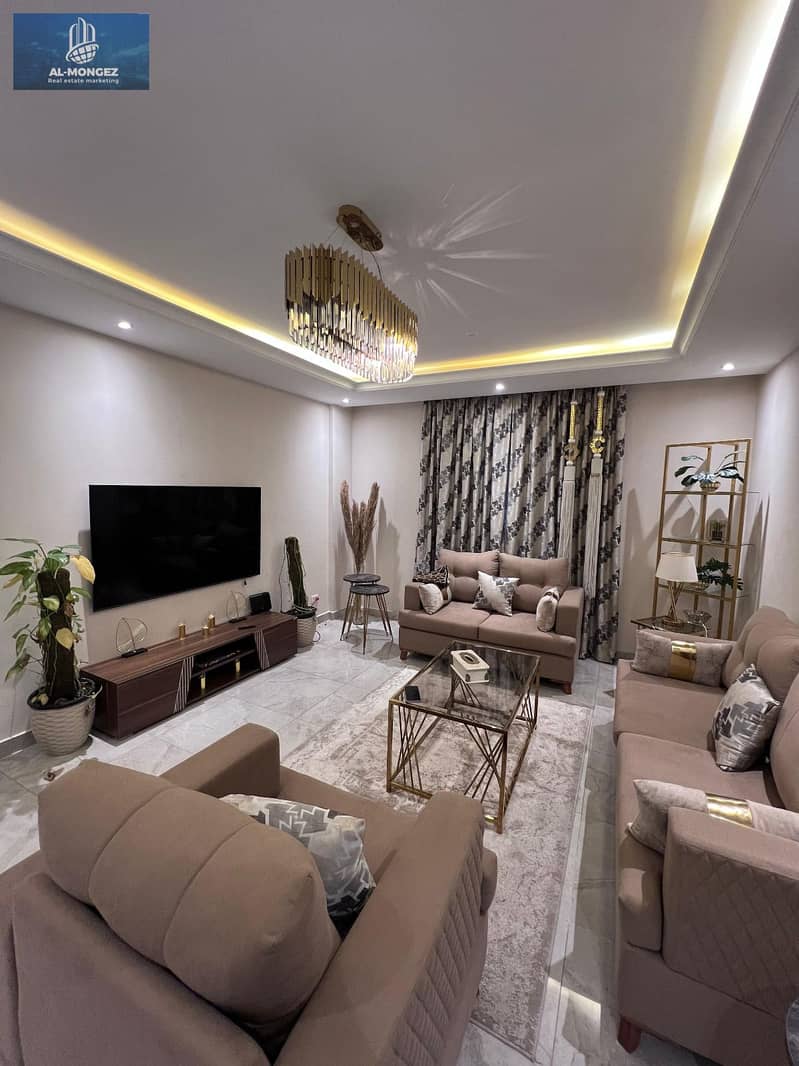 Distinctive furnished apartment for rent, super deluxe finishes, 90 sqm, 2 bedrooms and 2 bathrooms, modern furnishings, next to all services in Al-Re