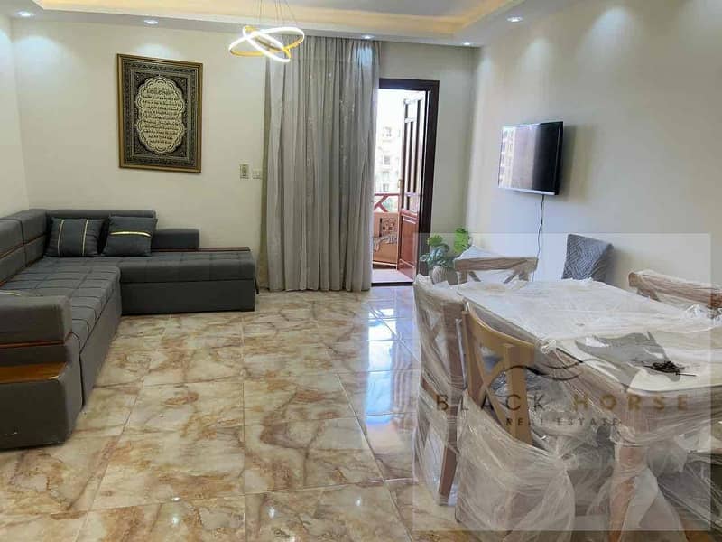 Furnished apartment with hotel-style furniture at the lowest price for rent in Rehab Compound, New Cairo